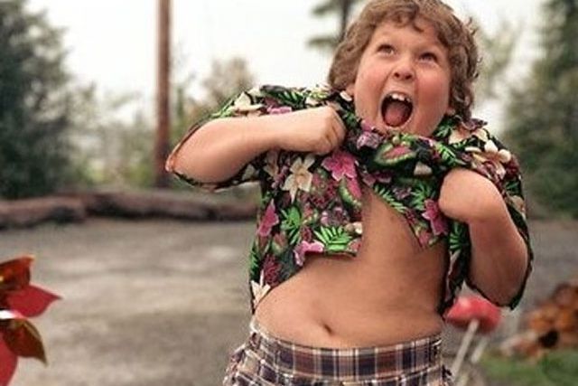 Oh the 80s, when fat-shaming was merely a sport, no jokes were off limits, and all complaints of bullying were met with ‘Snap out of it, stop being so sensitive’. Goonies are good enough! (But only the skinny ones apparently – stick that in your pie hole.)